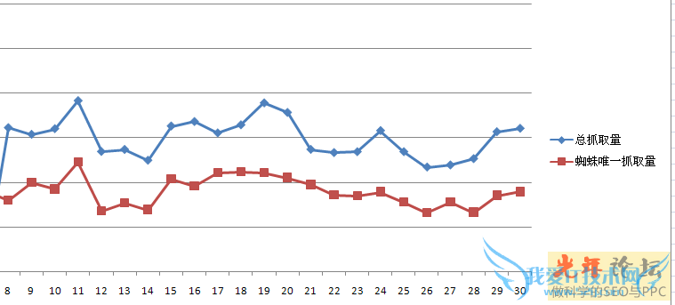 整体来看,网站重复抓取率是有点上升的,这个就需要一些细节,多一些为抓取的入口和使用一些robots及nofollow技巧。