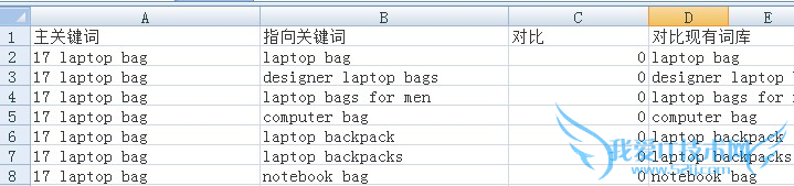 由于我们是做关键词的相关性,需要一个映射一一对应,比如关键词A与关键词B相关。现在我们需要在这个文件中第一列插入主关键词。然后就变成了这么一个效果。