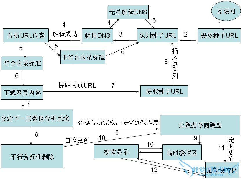 2、数据分析系统:分为数据分析和数据处理两个系统,当数据分析系统从抓取网页系统那获取到被下载的页面,首先进行数据分析去除不相关的文字或网站重复内容,进行页面文字的处理,然后对处理过后的页面内容进行判断,是否达到收录标准,达到交给存储系统,没有达到删除。