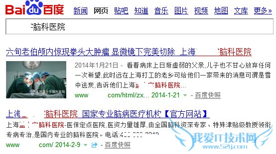 近日,在搜索某脑科医院品牌关键词时,前几位的网站均为百度推广,接着我们点击了第二位推广链接,链接跳转到其推广单页面,然后我们返回百度搜索框准备搜索其他关键词时,页面上的内容有所变化,大致的看了一下,发现当前页面的搜索内容全部变成刚刚所点击网站的站内链接,另外则是其他网站的百度推广全部消失。如下图:
