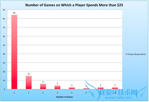Inside Social Games的相关报告指出,一旦“鲸鱼”玩家通常对某一款游戏具有较强的忠诚度,同时在两款或者以上游戏中投入相当数量金钱的玩家较少。如果玩家热衷于某款游戏,他们会将所有的虚拟货币“投资”于该游戏中。(如下图所示)
