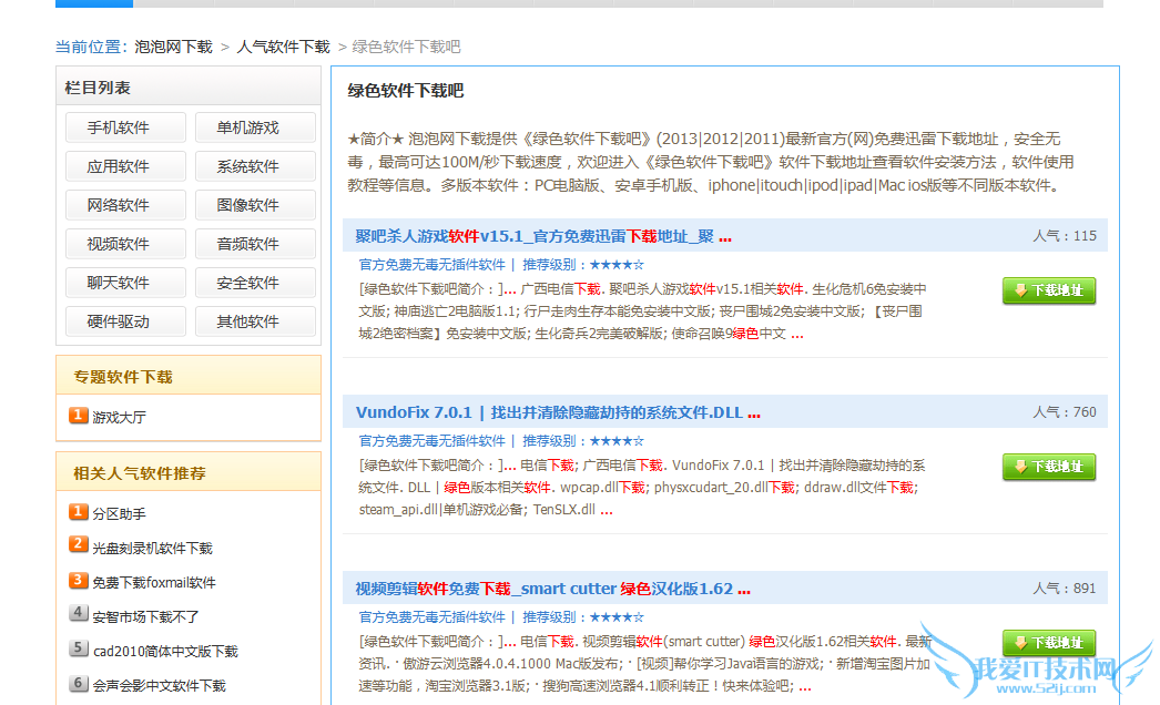 样例三、页面主题为“绿色软件下载吧”,但搜索结果中的内容并非围绕该主题的软件下载,完全不相关。