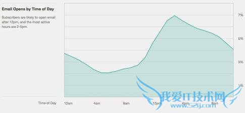 同时你要考虑发送邮件当天内的时间段。MailChimp做了一项令人惊讶的研究,主题就是一天的邮件打开/点击活动的最佳时间: