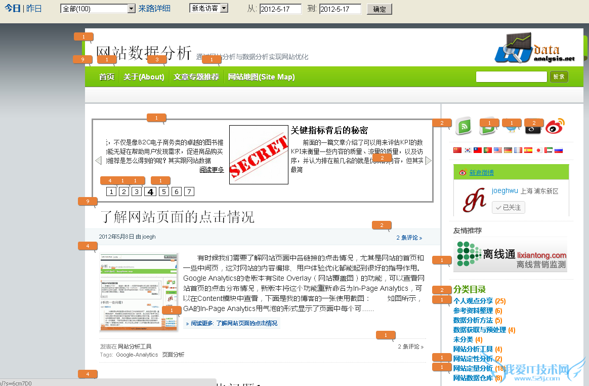 熟悉Google analytics的朋友都知道里面集成了一个:网页内分析(In-Page Analytics) 工具,用于可视化的查看指定页面的链接点击分布,当以可视化方式查看时,可以通过点击页面链接,依次查看各个页面的点击分布。