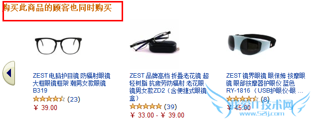比如,经常一起购买的商品、购买此商品的顾客也同时购买、推荐顾客购买这些产品、浏览此商品的顾客也浏览,这些都是带有相关性和随机性的。上图可以看到一个眼镜商品页面里出现这些,说明购买这个眼镜的客户还购买了其他与眼镜相关性的商品,比如眼镜盒、眼镜布等。