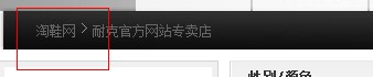 在套鞋网的源代码中,如上图所示,我们可以发现淘鞋网对于导航栏中的“首页”锚文本使用nofollow标签,这么做的原因主要有两个方面。其一是不想让蜘蛛爬行首页这一个锚文本链接,防止页面的相关性降低;另一方面则是不想因为这一个不相关的词让主页的权重降低,一个不相关的关键词会影响到权重与排名。而为了兼顾用户的友好体验,故使用“首页”做锚文本,而后使用nofollow标签对搜索引擎屏蔽。而后在面包屑上做关键词的安插,如图,