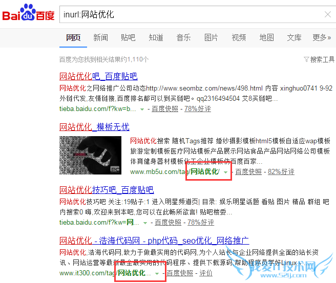 我们可以在百度搜索引擎里加入搜索命令 inurl:网站优化 返回的结果很明显百度收录了很多url中关于中文“网站优化”的字眼,可见搜索引擎的技术已经达到识别中文的水平了。