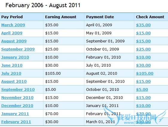 以下是2009年以来博客联盟在ReviewMe赚取的付费评论钱,总共赚了不到400刀,非常惨淡。一般而言,赚的比较多的那个月,也就表示我登陆ReviewMe比较多的月份,因为不登陆,根本不知道有没有新的付费评论任务。很多月都木有收到钱,主要就是因为没有登陆ReviewMe。