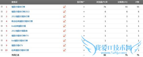 编号1288的页面,顾名思义就是较之3230更早的页面,这是笔者在上年5月份更新的一篇文章,题为“2013KTV歌曲排行榜之情歌对唱榜”,这张页面目前已经有差不多2万次浏览,而且趋势比较平稳,并非大起大落的类型,由于流量已经集中在某几个关键的长尾词中,因此每天所带来的IP相对稳定。