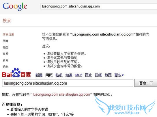 指定网站搜索当我们想搜索某一网站的内容是,可以通过site:网址的方式来搜索。例如我想看QQ书签里卢松松博客是否被收录,则使用lusongsong.com site:shuqian.qq.com