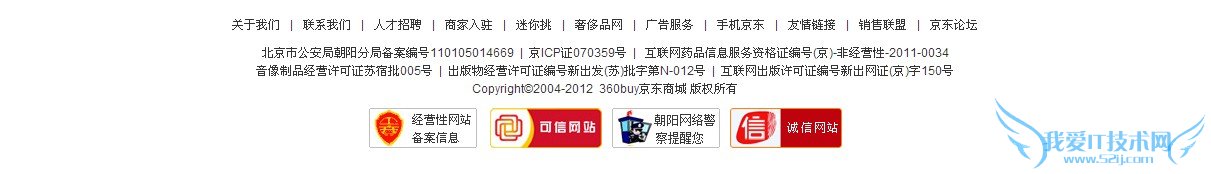 关于我们这一排的东西就不用说了,几乎所有网站都有,没啥好分析的,下面的一堆什么号和两张大红的可信网站图标,又再提醒用户,京东的实力是毋庸置疑的,这里的产品您可以放心购买,朝阳网络警察提醒您,又再暗示用户注意防骗,别被一些没有资质没有实力的网站骗了,暗示京东的产品都是正品,可以放心购买……