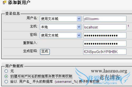 我们使用最多的应该是php+mysql程序,尤其是mysql在我们使用VPS的用户来讲如何添加数据库更为安全呢?今天上午我看到一个朋友还是用的root用户,这肯定是不能够的。我们需要为每一个网站添加单独的数据库用户,而且还需要设置权限。下面老左分享我们如何在phpmyadmin添加数据库用户及用户名。