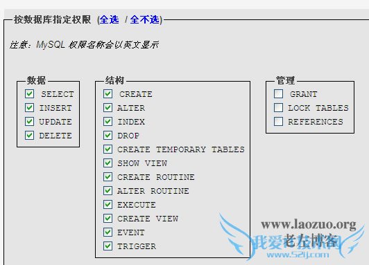 把管理权限中的Lock tables和references勾选取消,然后确定。