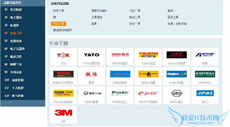 这是“手动工具”的页面,罗列的不是产品,而是手动工具的所有品牌。先让消费者选择品牌,然后在选择产品,这样消费者点进一个品牌,他只能去选择某一个品牌下面的产品,你要选择其他品牌的,不好意思,重新从头开始选择。