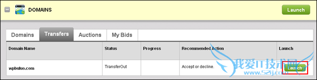 最后你会收到Godaddy的邮件,点击链接,登陆账号,然后选择transfer的域名,点击Launch