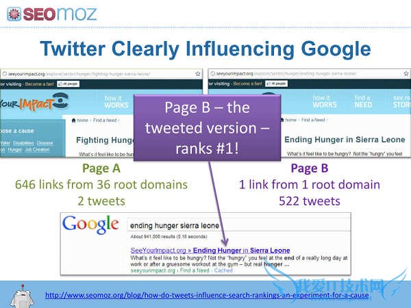 而针对这个论述,他们也做了一个实验,来证实Twitter对于Google排名的帮助: