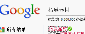 但在GOOGLE搜索主关键词“拓展器材”时,搜索结果出现的标题却是: