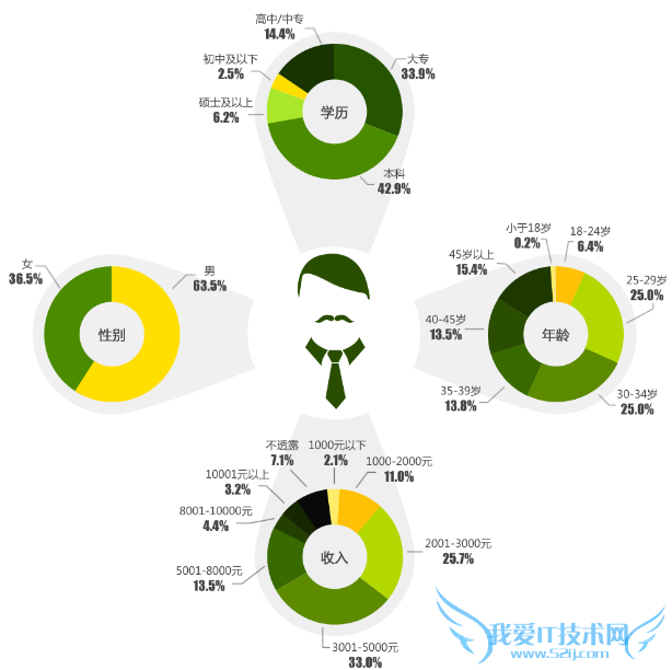 1. 男用户偏多,教育背景良好,偏成熟稳重,收入中等