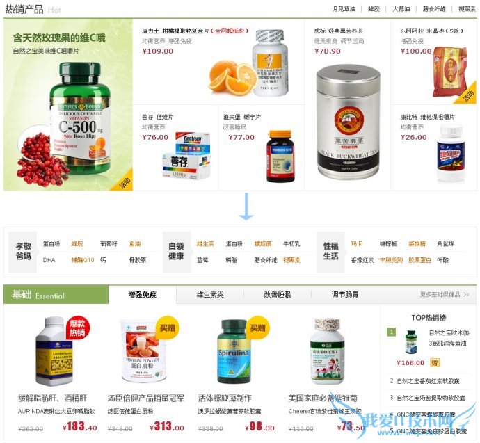 热销榜是我们当时比较纠结的地方,虽然调研报告中不建议放,但是考虑到众多竞品(无论是保健品还是化妆品)网站都有这个模块,因此为了稳妥,还是放了。