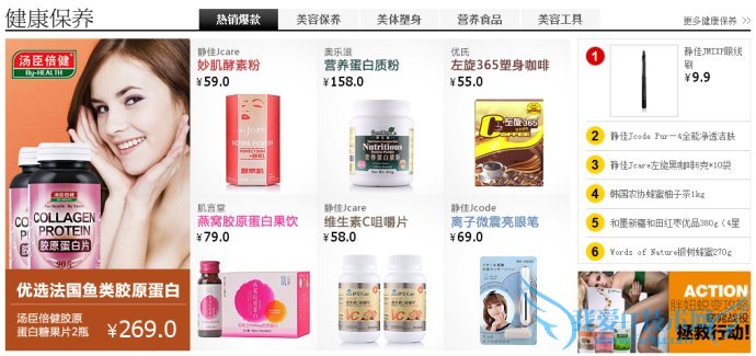 目前卖保健品的网站虽然不少,但垂直领域里做的好的并不多。但我们可以参考和保健品特征类似的产品网站,比如同样注重功效的化妆品网站(比如乐蜂网、聚美优品等)。