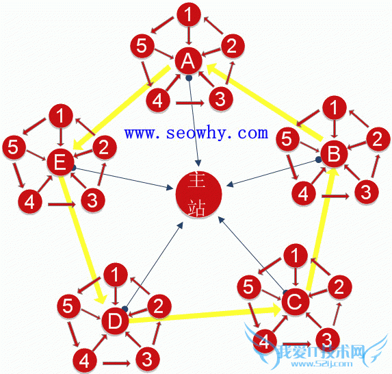 第二:在这里分享二个链轮图给大家吧,有一个是夫唯老师论坛下载的,现在就是操作他的那个图中的链轮,还有一个就是我在网上收藏的,看起来好吓 人啊,不过实际操作起来不是很难,相信第二个链轮图的效果一定好过前者。这种链轮被搜索引擎惩罚的概率非常低,初期效果可能不明显,但长期来看,可能效果 很好。见图