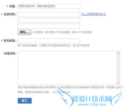 3、投诉范围要精准:不要简单投诉全站,先自己确定网站受影响的最小单位。比如是首页不更新还是内页、目录等等。