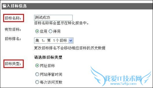 [size=+0] 目标名称:填写你这次目标渠道想跟踪的某个行为的最后结果,比如想要知道的就是性格测试“测试成功”数。
