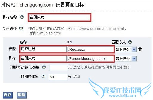 第2步:是“注册成功”页,因为成功页已经设为目标网址,所以这里就不需要再设置,最终设置如下,最后保存目标,即成功添加一个“目标“。