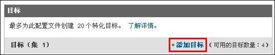 进入“配置文件设置”界面后,找到“目标”栏目,然后选择“添加目标“