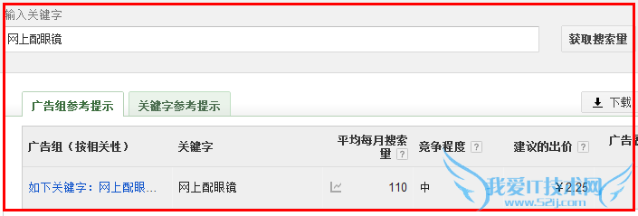 第二,判断关键词竞争程度还可以在竞价排名广告中需要付费的价钱,我有自己的百度竞价帐号,所以我可以看到详细的价钱,建议站长可选可不选,如果本身就已经开户了,建议还是选择这个。接着是我选择某个关键词,比如我选择了眼镜网时,后台会提示我所要付的价格,这个方法非常不错的。