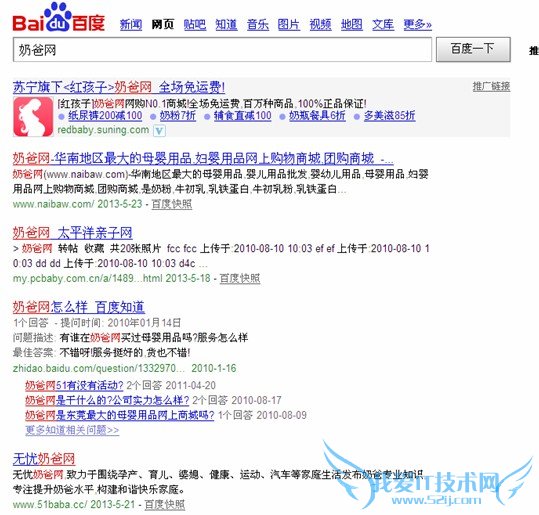 用图来说话,先请看百度的截图吧:第一张图是5.21日的快照,我的无忧奶爸网是5.20日晚上才把域名解析成功的;第二张图是搜索“奶爸网”这个关键词的排名情况,我的网站已经上升到首页的第五位了,第一位是一个推广链接。