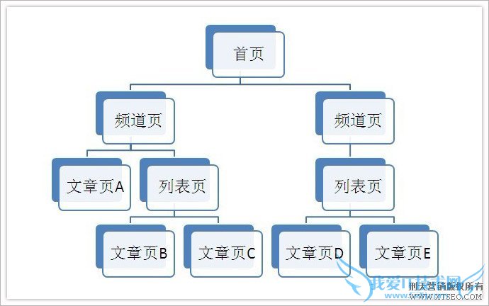 这里其实已经涉及到SEO结构优化了,将站点由线性结构升级为网状结构,可轻松聚合出大量的列表页面,解决列表页数量不足的问题。下面是我制作的两类站点示意图。