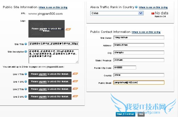以上就是向新版alexa提交资料全图文教程。如果对其中一些单词意思不清楚的可以借助下网上的一些翻译工具即可!本教程由移动硬盘哪个好(http://www.yingpan500.com)站长原创,欢迎大家转载,转载请注明出处,谢谢,毕竟写这些教程还是要花一些时间!希望对大家有所帮助!谢谢!