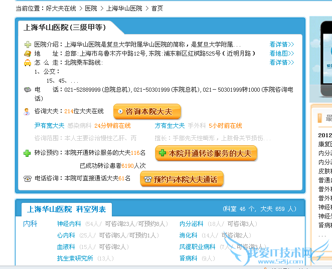 从上图可以看出,这个页面的最上面就是医院的介绍,然后就是这个医院的咨询方式。而下面就是这个医院的所有科室列表。这样的页面设计应该说是非常符合人们的使用习惯了,一句话用户体验度做的比较好。我们在看看这个网站的内页的标题,如下图: