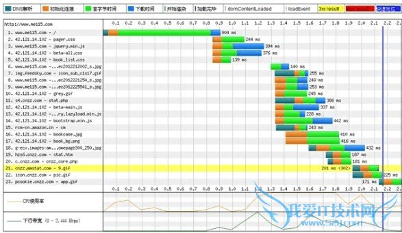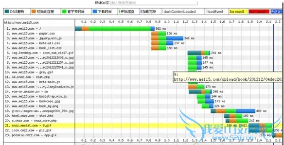 查看最终的测试结果,整体实现了较大的性能提升,最终页面展现时间为1.62s(测试使用的是一个第三方web测速工具,所有测试结果是在第三方本地无缓存的条件下进行)。仔细观察本站最后几个加载项:有一个第三方网站的广告(加载广告的时刻,页面已经全部呈现,对用户体验影响不大),以及cnzz的统计数据。这样看来,在第12项加载完后,整个页面就完整的呈现在用户面前,优化最终结果是1.1s,较优化前加载速度提升2s;由于物理条件(虚拟机、国外站点)所限,本次优化就到此为止(后续将在并行下载上做做文章,看是否有进一步提升空间)。