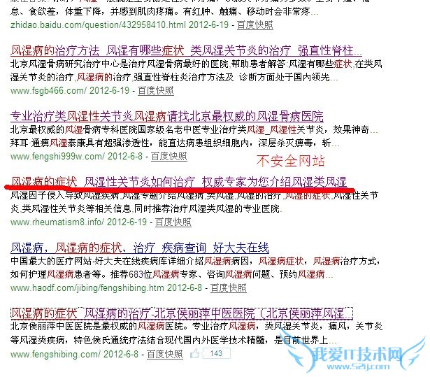 先在百度搜索“风湿病的症状”,去除一下推广的跟百科,知道,我们在首页看到有下面几个网站。