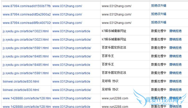 从上图中我们可以看到7月11号外链是正常的232条,可在7月18号,突然增加到2000条,而且根据时间的推移现在已经增加到9501条。莫名的垃圾外链让我哭笑不得,我们来看下外链的的具体分析图:
