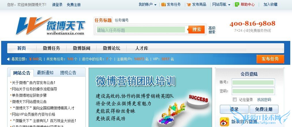 老彭:目前运营比较稳定,前期做了很多推广,其中微博推广也是主要的方式之一。网站目前日IP2000左右,PV已经超过1万,注册会员2万多,任务