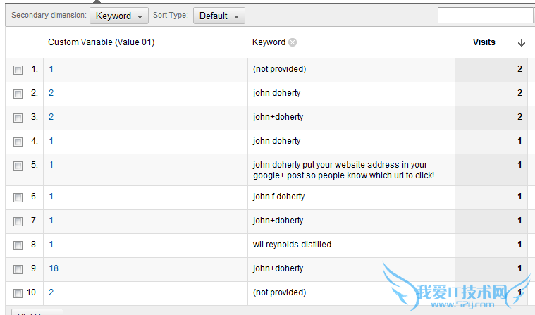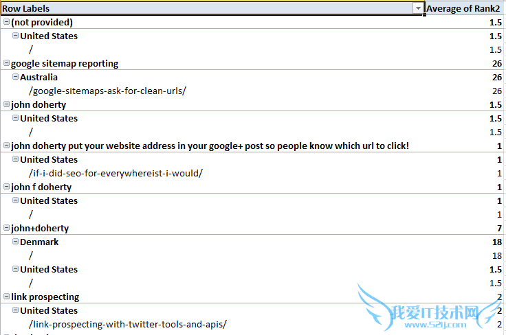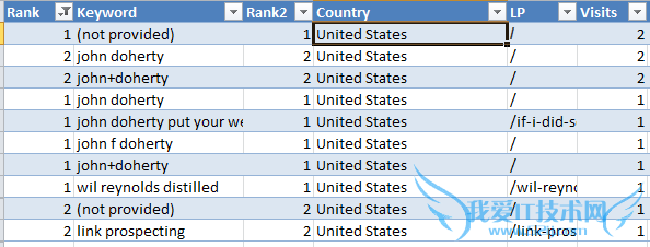 我们现在可以去猜测那些不提供(not provided)的关键词是什么了。如下图所示,我们知道访问者从(not provided)的#1和#2进入。根据这些信息,我们可以按照第一名和第二名进行降序排列,如果你这么做,你就能大致猜到这些关键词是什么了。