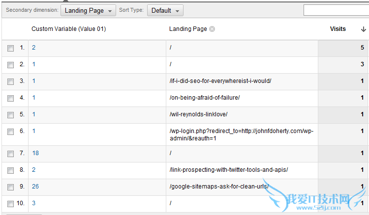 将第二个维度设置为着陆页(landing page),就能看到这些着陆页的排名了。
