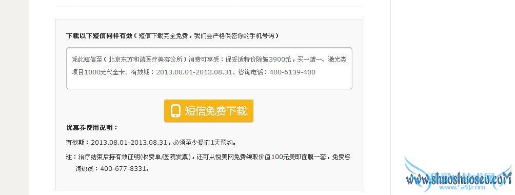 很 多商业的网站总是恨不得网站到处都是商务通,强迫用户留下联系方式。但是用户喜欢这样的吗?估计是会有一些刚性需求的用户会与你对 话,但是这种用户又有多少呢?就是一些用户跟你对话,这些用户会跟你成交吗?效果你可以问问你的咨询人员就知道了。我们在来观看悦美网是怎么做的。进入网 站看上去是非常干净的,根本没有很多商务通。都是让用户充分了解他们想知道的东西,在优惠的这个栏目也是让用户自动留下预约信息的。千万不要担心这样的转 换不好,如果你的网站在120有问必答做了投放的话,你去观察一下数据。对话的数据竟然比你在百度投放的关键词的对话数量还要多,这个说明什么?就是你的 网站商业性太重了,反而用户不留下信息。
