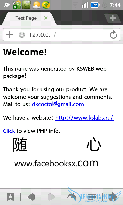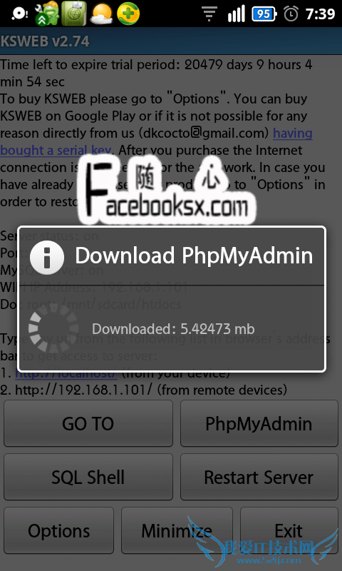 第二:下载我提供的集成环境的APK文件(这里)解压密码:www.facebooksx.com,KSWEB在谷歌商店里是收费的,免费试用5天,我提供的这个文件为网友破解版,免费试用55年,够你折腾了。