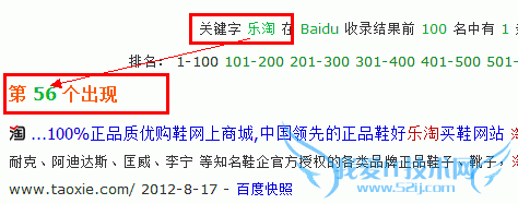如果我没看错的话,好乐买也是淘鞋网的主要的竞争对手之一,竟然在友情链接中做“好乐买”关键字的排名,可惜我们大家搜索“好乐买”,在前五页全部都 是好乐买本身的页面排名,做这个关键字意义何在呢?下面笔者就截图一下淘鞋网分别在“乐淘”和“好乐买”100名之类的排名,如图