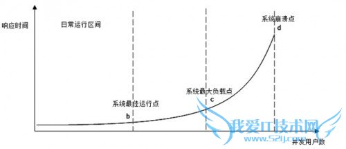在日常运行区间,可以获得最好的用户响应时间,随着并发用户数的增加,响应延迟越来越大,直到系统崩溃,用户失去响应。