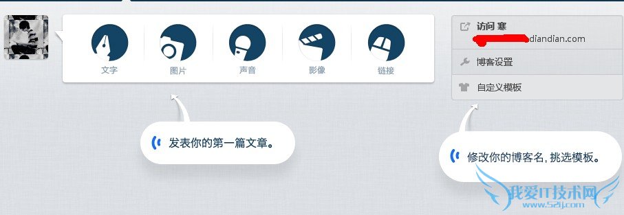 第一步,先申请一个点点博客,打开点点网主页之后,点击右上角的注册,有六个平台可以注册,新浪微博、腾讯微博、QQ账号等,都可以选择,注册的时 候填好邮箱以及域名,域名如果被人注册的话,那么就换别的域名即可,比如1234567.diandian.com这种,注册之后,进入到主页。