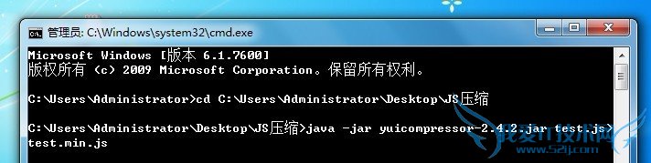 使用方法可从cmd到进入yuicompressor.jar所在磁盘,我以自己的yuicompressor-2.4.2.jar为例: