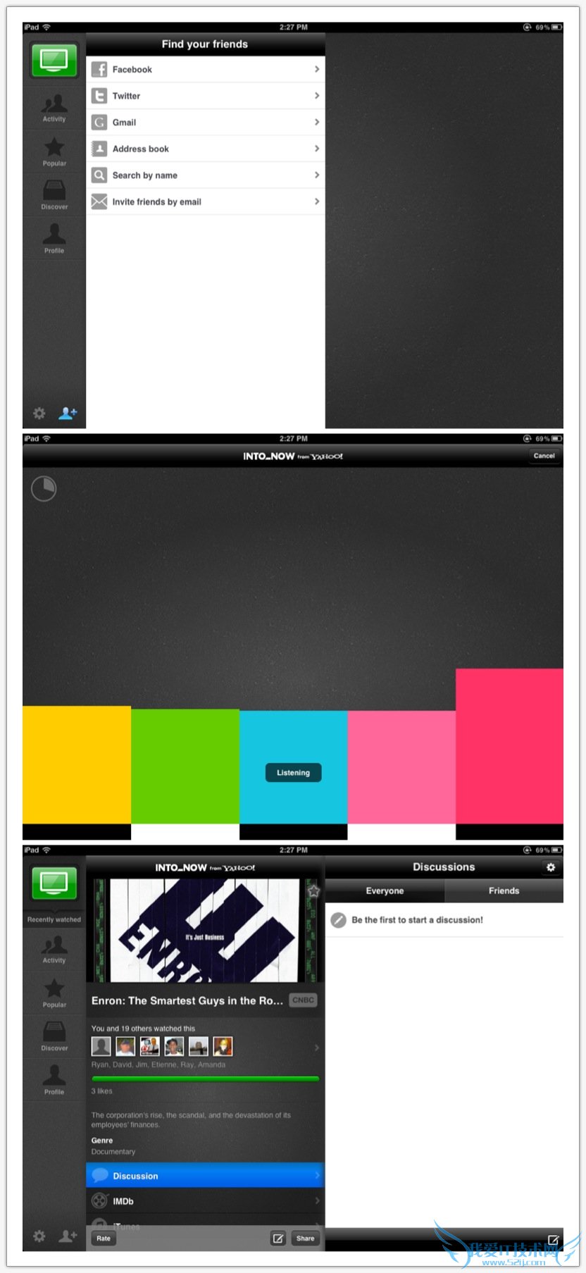 提一个最近我比较感动的社会化电视的APP。Yahoo最近在平板上推出了2个比较吸引眼球的App,Livestand和IntoNow。今天介绍的IntoNow这个App,我自己测试了一下,惊叹了一下,故而拿出来做例子。