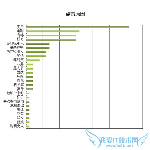 3. 实用的东西:即使画面并不吸引人,甚至有些用户觉得图文不搭,或图片很丑,只要内容感兴趣,都愿意看看。“实用”的范围很广,且因人而异:对于考生“高考 /CET”是实用;对于适龄者“结婚/装修”是实用;对于白领“年终奖/面试”是实用。4. 性别差异:男生对吵架、骂人的话题感兴趣,女生相反;对于电影、开玩笑的主题则均有好感。5. 其他因素:主题鲜明、画面吸引人、内容吸引人,都会成为点击的原因;只要画面不是很突兀,文字会让人产生疑问,会因为好奇心而点进去。