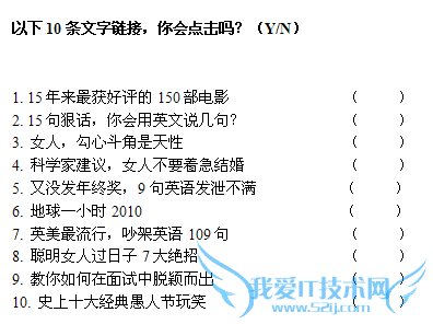 随后跟上这10个广告的文字链接,再次询问愿否点击,再用2组数据对比分析。