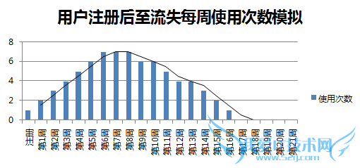 一般的用户使用行为会是一个正态分布的曲线,当用户使用周期确定后,很多结果就会由数据中读出来了。以下图为例: